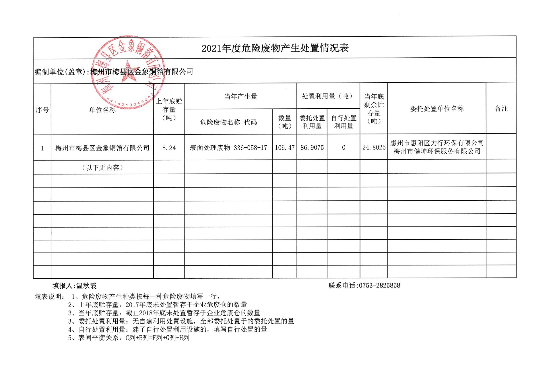 梅州市梅縣區(qū)金象銅箔有限公司系廣東嘉元科技股份有限公司的全資子公司,現(xiàn)將梅州市梅縣區(qū)金象銅箔有限公司國(guó)家排污許可證中固廢污染防治信息進(jìn)行公示。