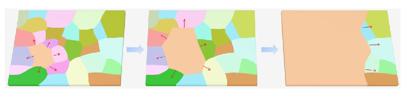 優(yōu)勢(shì)晶粒生長(zhǎng)法: 成本低、大面積制備單晶銅箔。即在高溫下,吉布斯自由能(表面能+界面能+應(yīng)變能)最低的晶面為優(yōu)勢(shì)晶面,各晶粒均通過(guò)晶格旋轉(zhuǎn)、晶界遷移,向優(yōu)勢(shì)晶面轉(zhuǎn)化,多晶銅箔逐漸轉(zhuǎn)化為單晶銅箔。