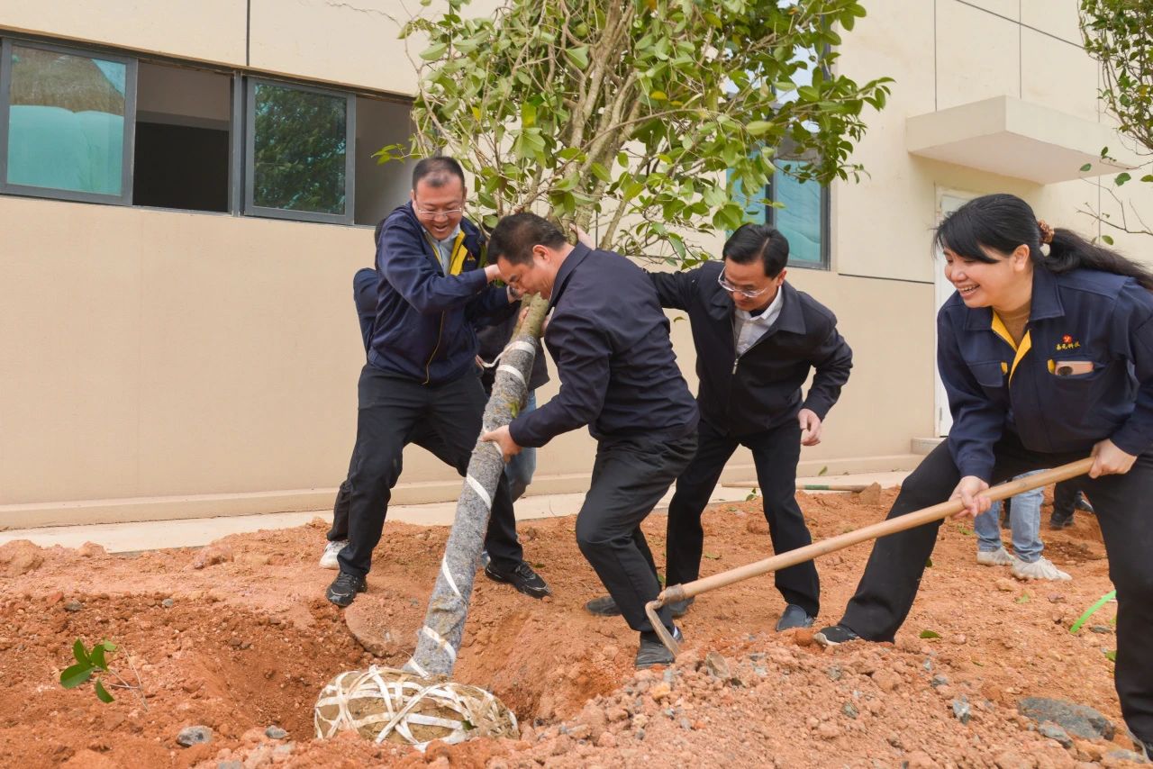 據(jù)了解,公司已在梅州雁洋、白渡和城東基地種植桂花、九里香、香樟等各類花草樹木12000多株,植被35000多平方米。為響應(yīng)綠美梅州行動號召,助力“百千萬工程”和梅州融灣先行區(qū)建設(shè),嘉元科技懷著感恩之心,積極履行社會責(zé)任義務(wù),投身生態(tài)文明建設(shè),今年3月初發(fā)出“共植‘嘉元林’ 共享新生活”倡議書,董事長廖平元、總裁楊劍文帶頭捐款,廣大員工踴躍參與。本次活動已收到捐款及捐贈樹苗折合價(jià)值約16多萬元,種植綠植近1000株。