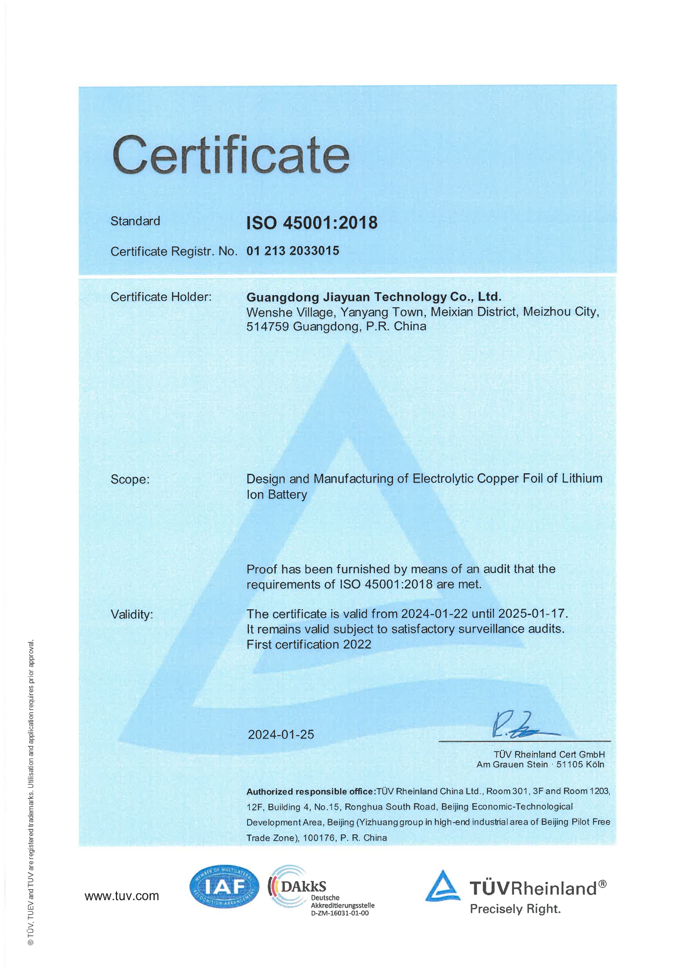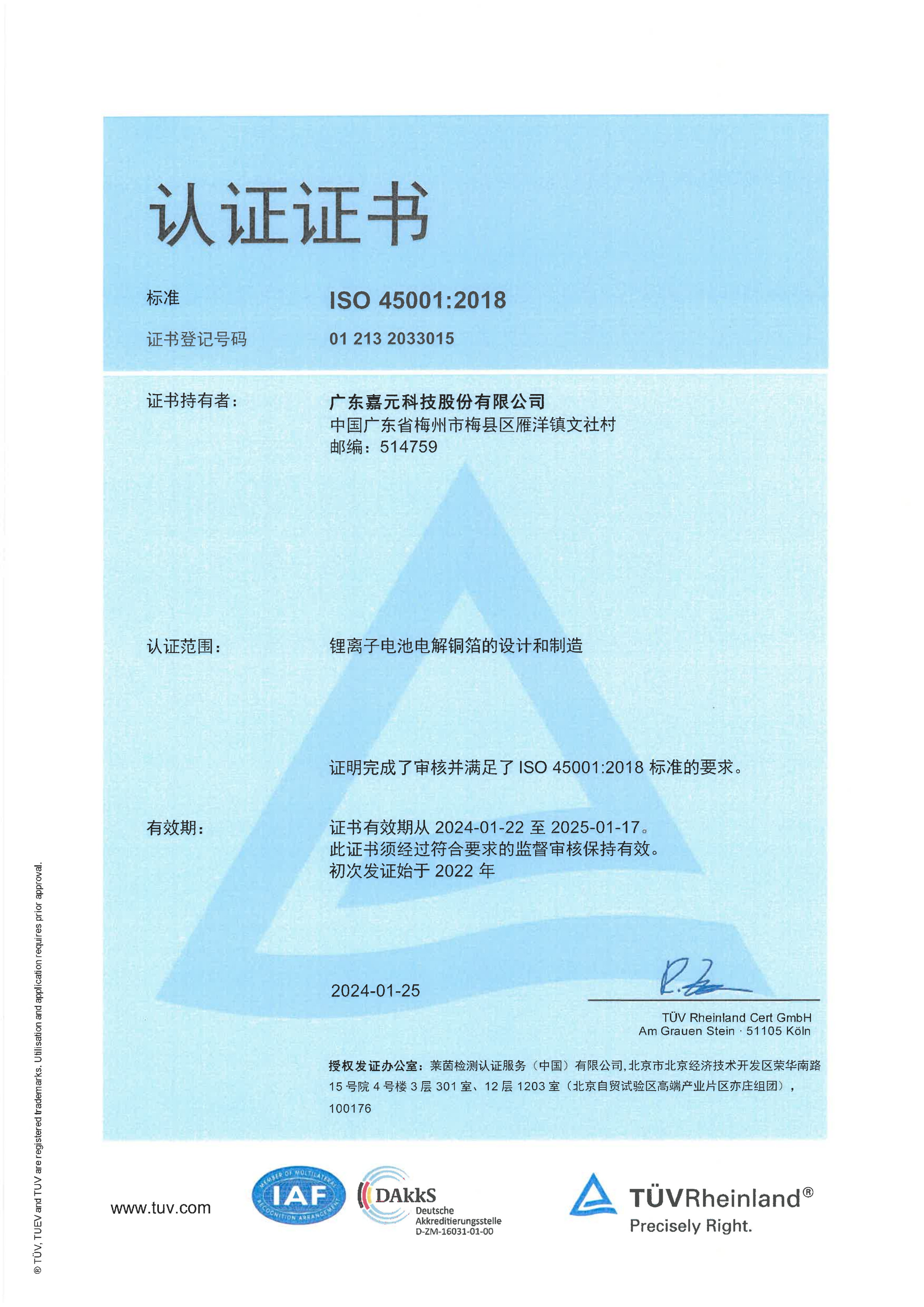 ISO 45001:2018認(rèn)證證書(shū)