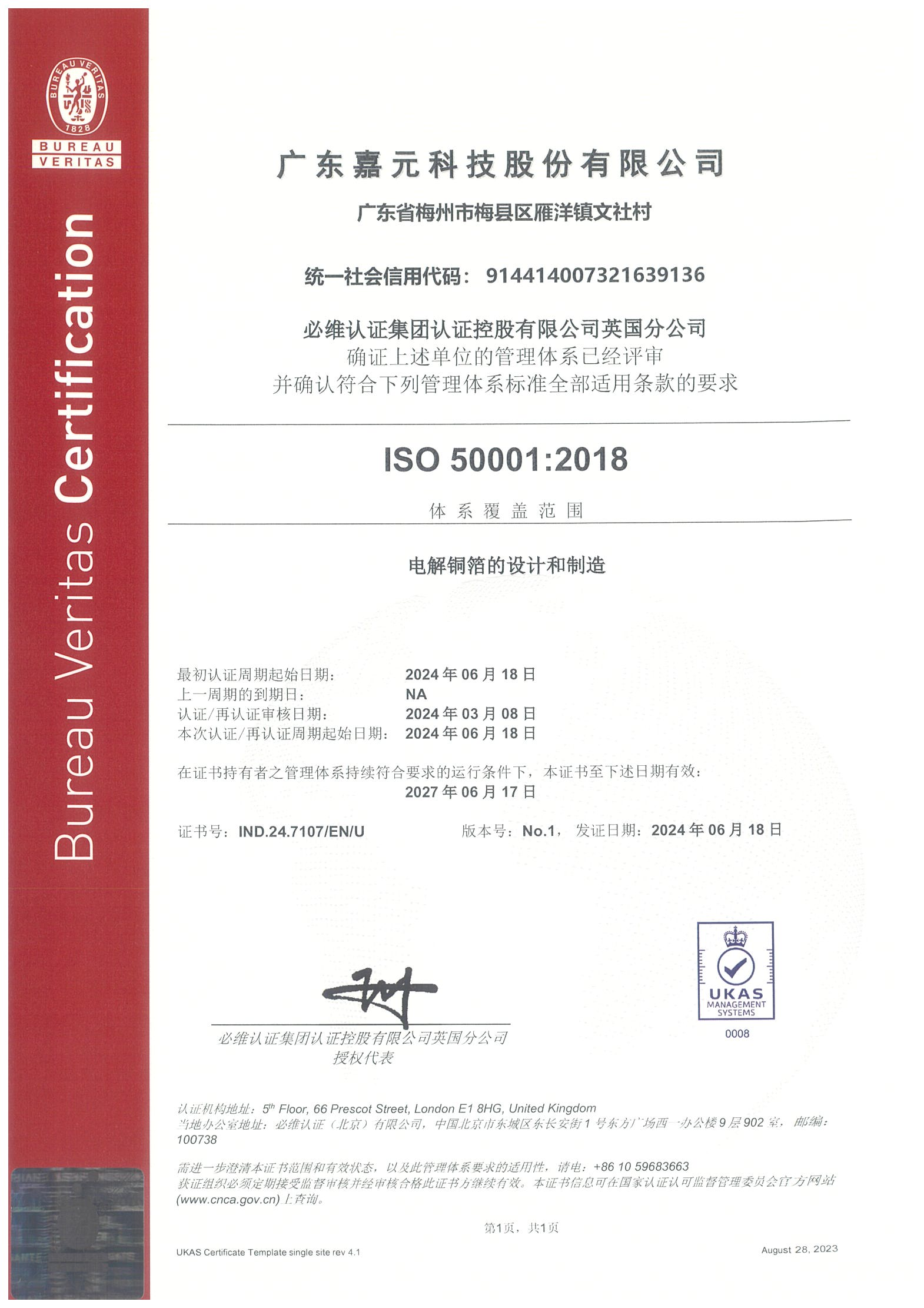 ISO 50001:2018能源管理體系證書(shū)